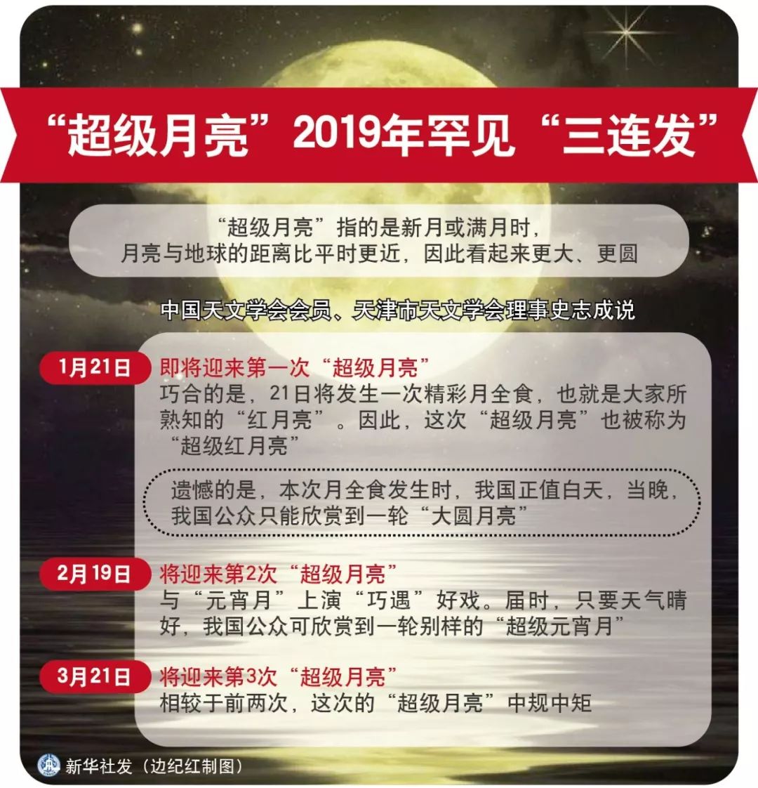 ④天文專家表示,“超級(jí)月亮”2019年會(huì)上演罕見(jiàn)“三連發(fā)”,時(shí)間分別是1月21日、2月19日和3月21日。在這3次當(dāng)中,第2次觀賞效果最佳。