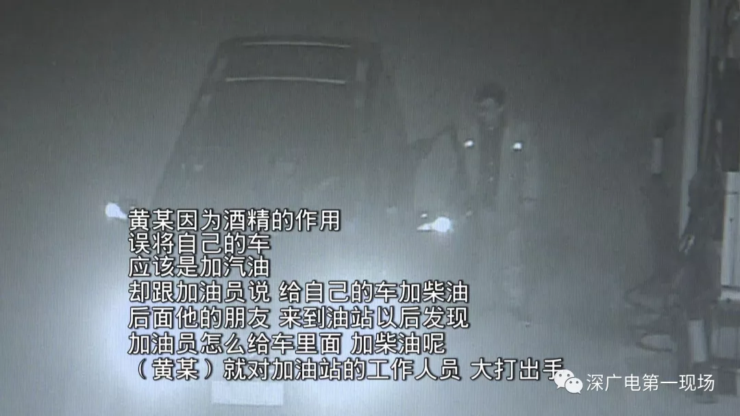 這一幕發(fā)生在寶安區(qū)沙井街道錦繡路的一個(gè)加油站。從監(jiān)控可以看到,凌晨4點(diǎn)左右,一輛桂A牌照的商務(wù)車(chē)駛?cè)爰佑驼炯佑?但這油才加到一半,司機(jī)黃某卻突然沖下車(chē),與工作人員發(fā)生爭(zhēng)執(zhí)。