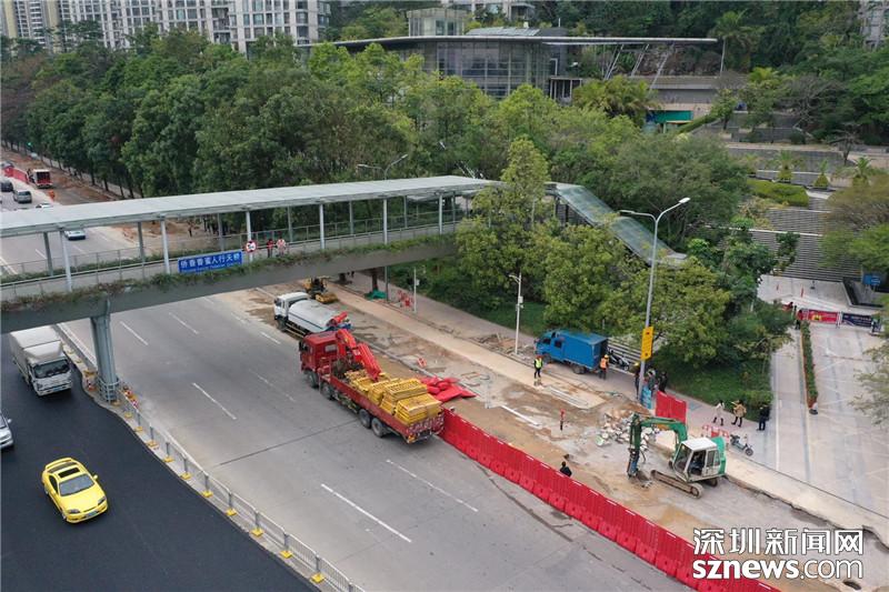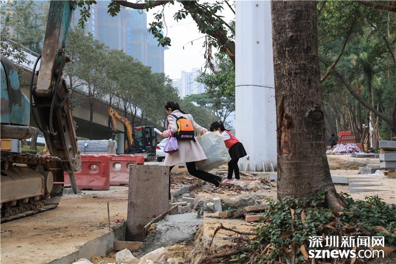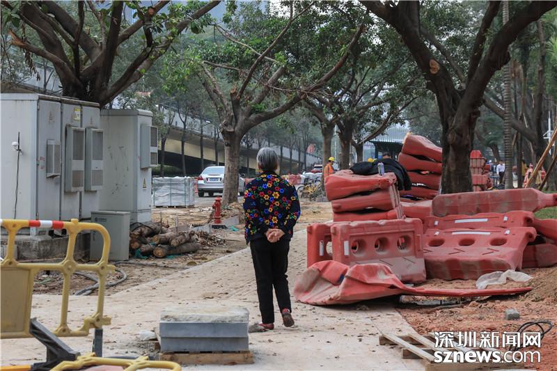 福田僑香路是人大代表楊勤調(diào)研的第二個點,從現(xiàn)場可以看到,目前僑香路人行道正在進行施工,不少大型機械正在作業(yè),發(fā)出陣陣轟鳴聲,來往行人只能繞道。