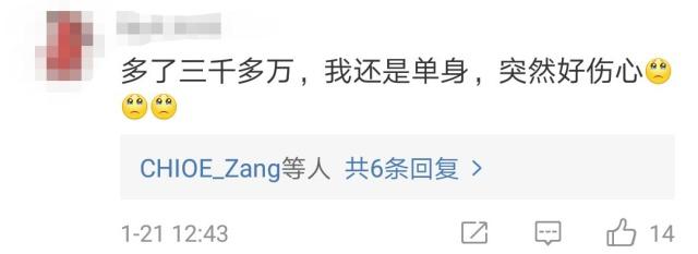 人民日報(bào)2019年1月22日訊 國家統(tǒng)計(jì)局21日發(fā)布的數(shù)據(jù)顯示,中國大陸人口逼近14億,男比女多3164萬人!不少女性問,為何男比女多,“我還是單身呢”?網(wǎng)友回復(fù)亮了…