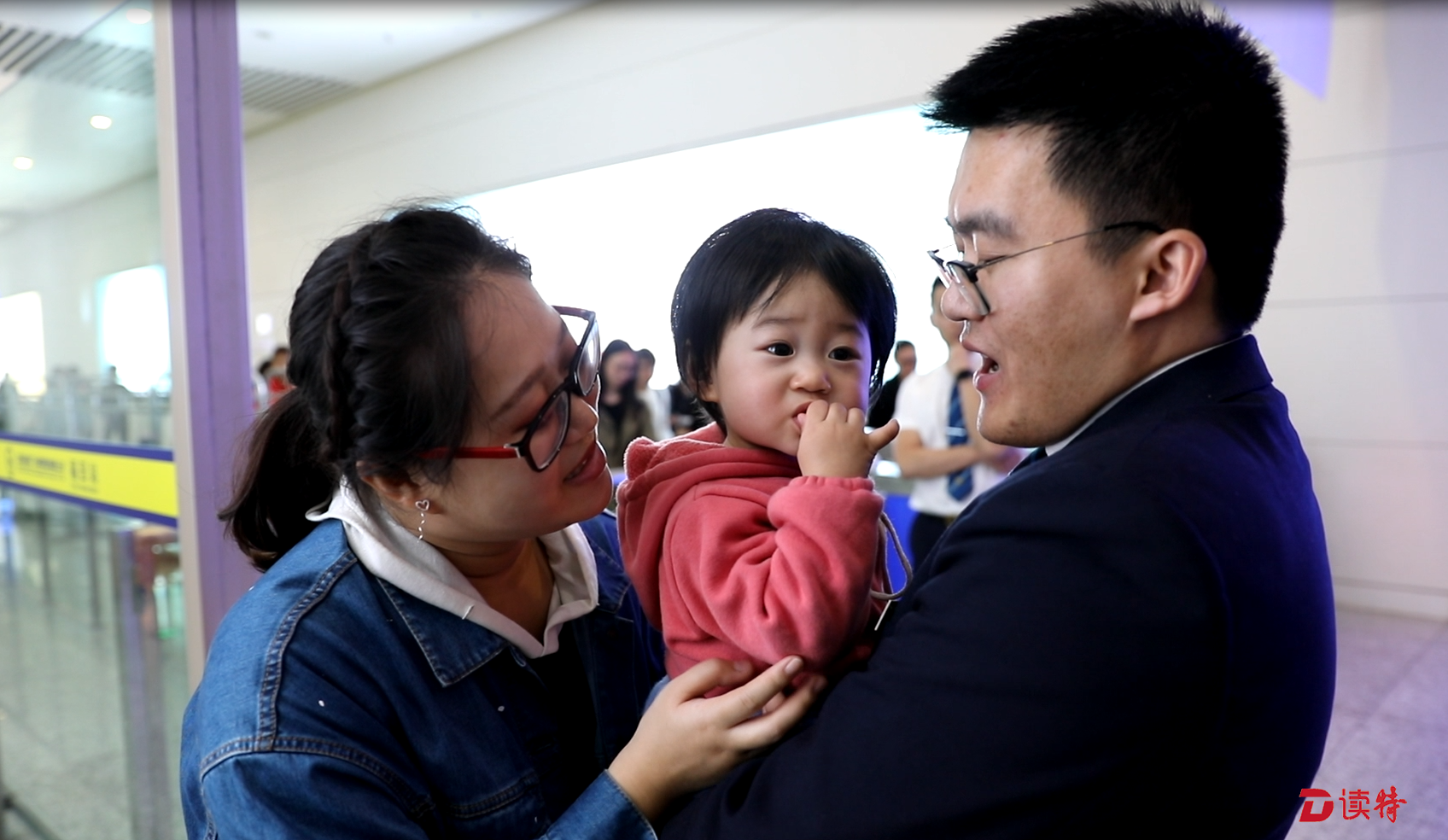 你下班時我接班!站臺上“交接”女兒的“春運(yùn)夫妻”