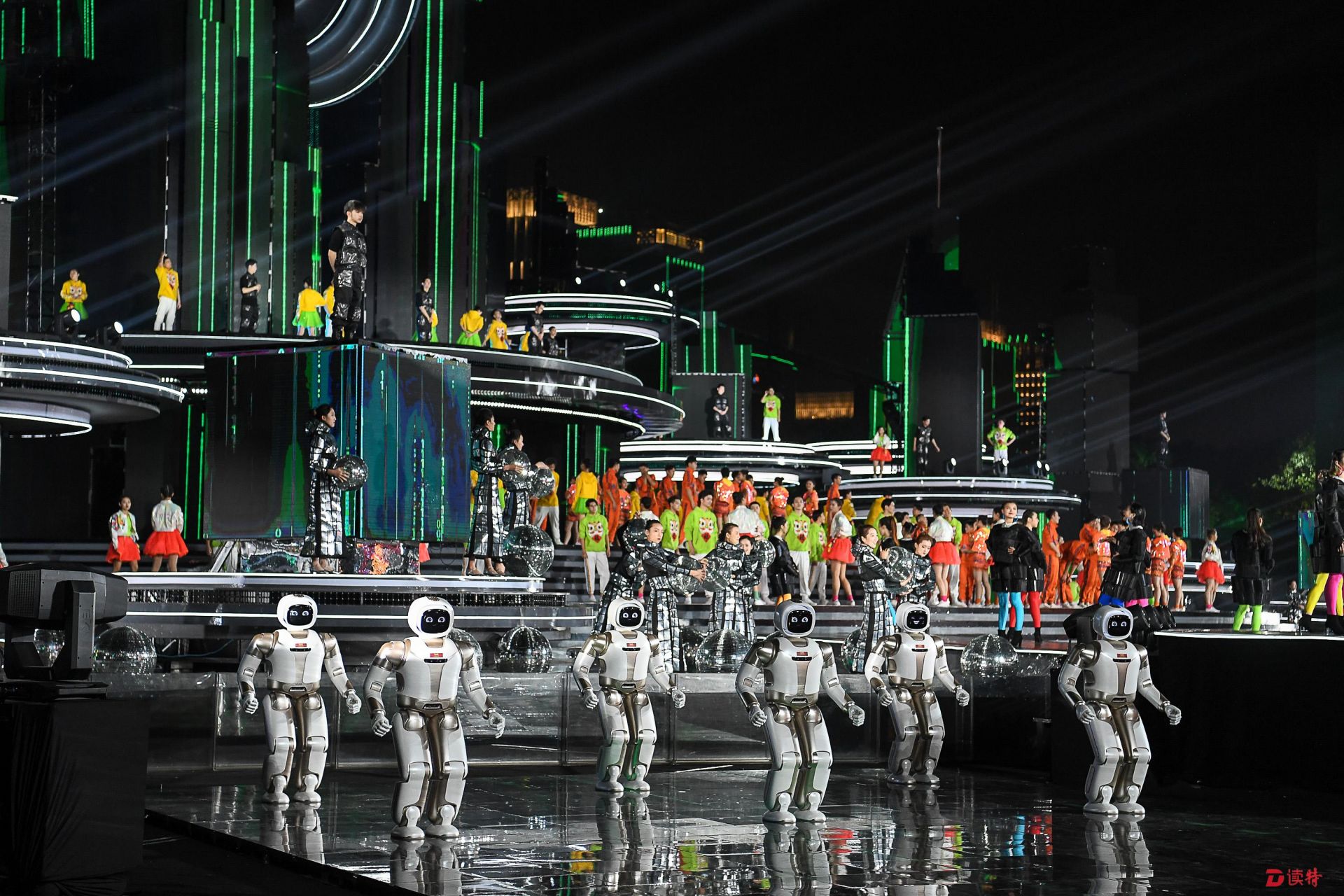 在彩排開(kāi)始前記者發(fā)現(xiàn),和往常五光十色的舞臺(tái)設(shè)計(jì)不同,日光下的深圳分會(huì)場(chǎng)主舞臺(tái)背景是清一色的黑色。孫濱告訴記者,當(dāng)舞臺(tái)燈光亮起,電視機(jī)前的觀眾將看到一座無(wú)比酷炫的“未來(lái)之城”,是名副其實(shí)的“黑科技”。