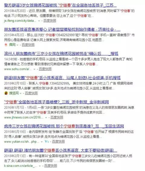 在網(wǎng)上搜索"寧繼春",就會發(fā)現(xiàn)這其實(shí)是一則不折不扣的假消息。從2014年起,全國各地就傳出錦繡花園小區(qū)"丟孩子"的網(wǎng)絡(luò)謠言,還有10萬元"重謝"的承諾。