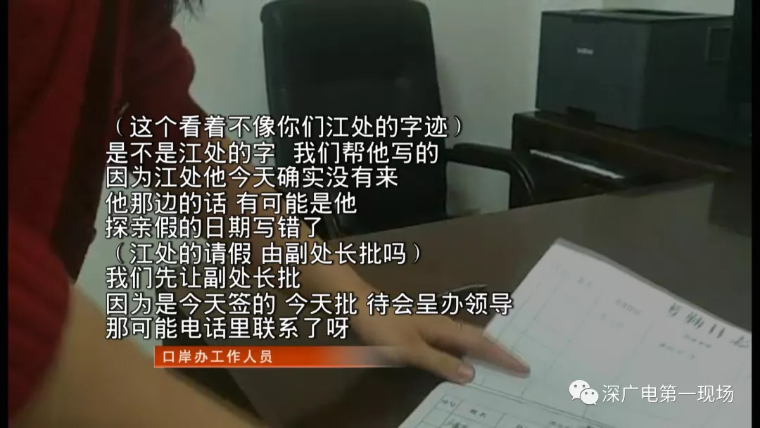 但暗訪發(fā)現(xiàn),也有個別缺崗人員未按照正常流程履行報假手續(xù)。2月11號上午9點40分,市紀委暗訪組來到深圳市口岸辦公室,發(fā)現(xiàn)該單位到崗率良好,辦公秩序井然。但在暗訪檢查中發(fā)現(xiàn),本應(yīng)登記當天在辦公室上班的口岸辦陸路二處處長江某并不在辦公室,經(jīng)核對其請休假情況,其提交的休假報告是從2月12號開始,但11號,他人已經(jīng)沒有到崗。隨后,該處一名工作人員拿出了一份登記表,表上寫名該處長今天補休。然而,領(lǐng)導簽字一欄并非單位主管或分管領(lǐng)導,而是該處的一名副處長。暗訪人員發(fā)現(xiàn)這份登記表是11號當天才填寫的。