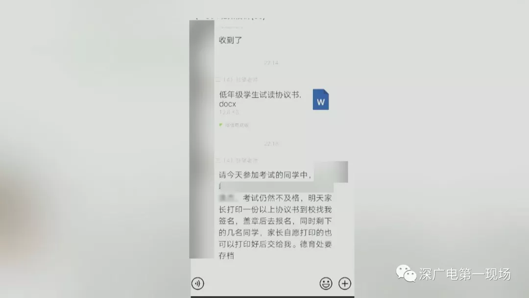家長反饋不一有家長沒接到通知在學校財務室門口,也有很多家長在此排隊準備辦理報到手續(xù)。對于《試讀協(xié)議》的情況,有部分班級的家長表示不知情,沒有收到通知,但也有家長已經(jīng)簽過協(xié)議,并且讓德育處有關領導簽過字,這才來到報到的。