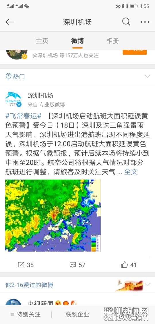 深圳機(jī)場微博發(fā)布航班延誤提醒