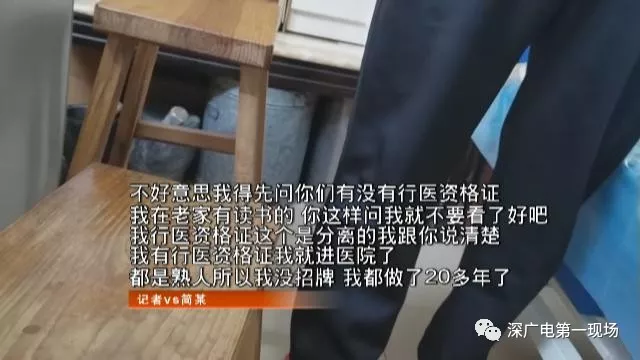 簡某嘴上說他有醫(yī)學(xué)院畢業(yè)證,但最后出示的是20多年前取得的,《廣州市社會力量辦各類校班結(jié)業(yè)證書》及《中醫(yī)醫(yī)療函授學(xué)習(xí)證書》,衛(wèi)監(jiān)人員說這都不算醫(yī)師執(zhí)業(yè)資格。對于沒有資格證的問題,簡某表示自己曾經(jīng)咨詢過,原來可以到湛江進(jìn)行考試,但現(xiàn)在已經(jīng)不行了。
