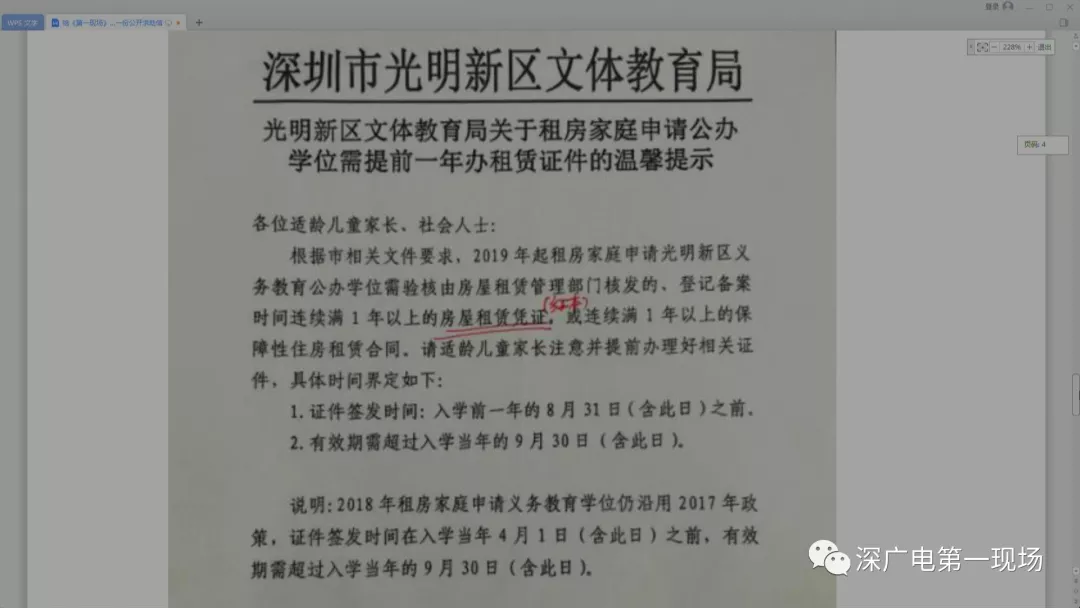 深圳市教育局今天書(shū)面了回應(yīng)《第一現(xiàn)場(chǎng)》的咨詢(xún),稱(chēng)2016年,經(jīng)市政府批準(zhǔn),市教育局和市房屋租賃辦聯(lián)合印發(fā)《深圳市教育局、深圳市房屋租賃管理辦公室關(guān)于在義務(wù)教育就近入學(xué)核驗(yàn)住房證明材料的通知》,對(duì)無(wú)法提供《房屋租賃憑證》的租房家庭,可提供由市房屋租賃管理部門(mén)出具的《房屋租賃信息》。該文件有效期為三年,有效期截止時(shí)間為2019年2月26日。2018年9月12日,深圳市房屋租賃辦來(lái)函,提出將于2019年2月28日前只受理租賃期限不超過(guò)2019年12月31日的《房屋租賃信息》辦理申請(qǐng),征求市教育局的意見(jiàn)。鑒于我市每年義務(wù)教育階段學(xué)校新生招生于4月份開(kāi)始啟動(dòng),市教育局建議辦理《房屋租賃信息》的時(shí)間延至2020年4月30日。此項(xiàng)規(guī)定,不影響2019年申請(qǐng)入學(xué)的適齡兒童。