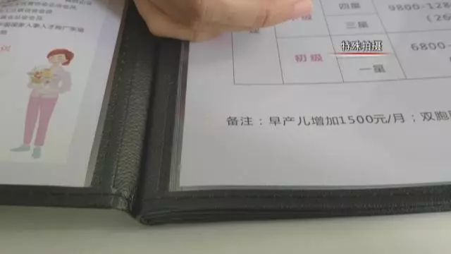 這家家政公司把核心業(yè)務(wù)直接鎖定在月嫂服務(wù),看到有顧客前來,工作人員稱公司剛剛換了新的價(jià)格牌。價(jià)格單顯示,月嫂一般工作周期為26天,初級月嫂即一星二星級,薪資從6800到9800,金牌服務(wù)則在12800到2萬元。