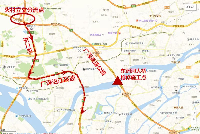 據(jù)廣深高速相關人員介紹,東洲河大橋南行將于3月7日6時至18時進行封閉施工,施工預計需要12小時。施工期間路段實行交通管制,單幅全封閉廣深高速公路廣州往深圳方向新塘至麻涌路段,同時封閉蘿崗收費站、新塘收費站的深圳方向入口,過往車輛需要注意選擇繞行路線。換梁施工期間,橋下上行和下行的通航孔也將進行航道管制。