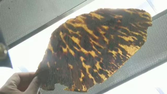 經(jīng)華南野生動(dòng)物物種鑒定中心鑒定,這些物品都是海龜科海洋動(dòng)物——玳瑁的背甲殼。