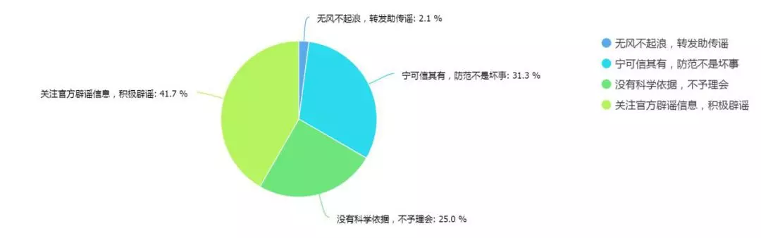 “舌尖上的謠言”長期在朋友圈里“屢辟屢傳”,其中一個重要原因是因為消費者有著極大的安全焦慮。食品謠言的存在,不僅說明了消費者在相關(guān)科學(xué)知識方面的空白,也反映出社會對食品安全的擔憂。不過經(jīng)過相關(guān)部門和媒體的大力宣傳,已經(jīng)有41.7%的受訪者會主動關(guān)注官方辟謠信息,積極辟謠。