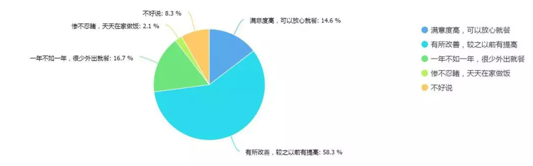 對于深圳白領(lǐng)非常關(guān)心的餐飲店面,接近6成受訪者認為比之前有所改善,14.6%受訪者認為可以放心就餐