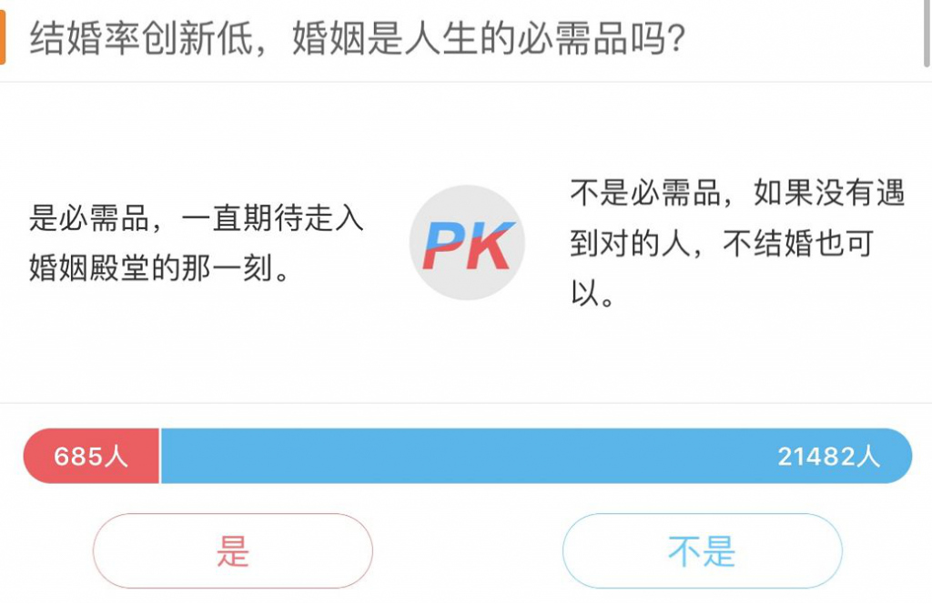 僅有685人認為婚姻是必需品