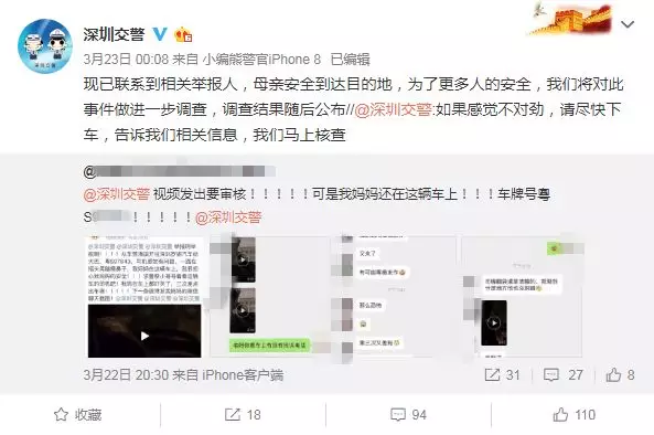 深圳交警接到舉報信息后實時關注事情動態(tài),盡快聯(lián)系舉報人員了解車內(nèi)詳情。