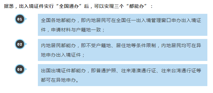 4月1日起,中華人民共和國普通護(hù)照、往來港澳通行證、往來臺(tái)灣通行證等出入境證件實(shí)行“全國通辦”。