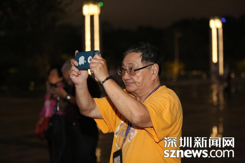 現(xiàn)場(chǎng)觀看燈光秀的市民