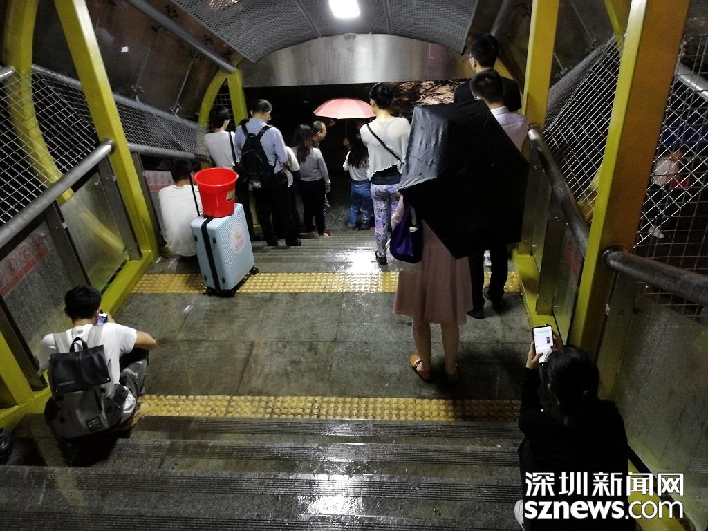 雨太大,很多人在地鐵口躲雨。(記者 邱曉潔 攝