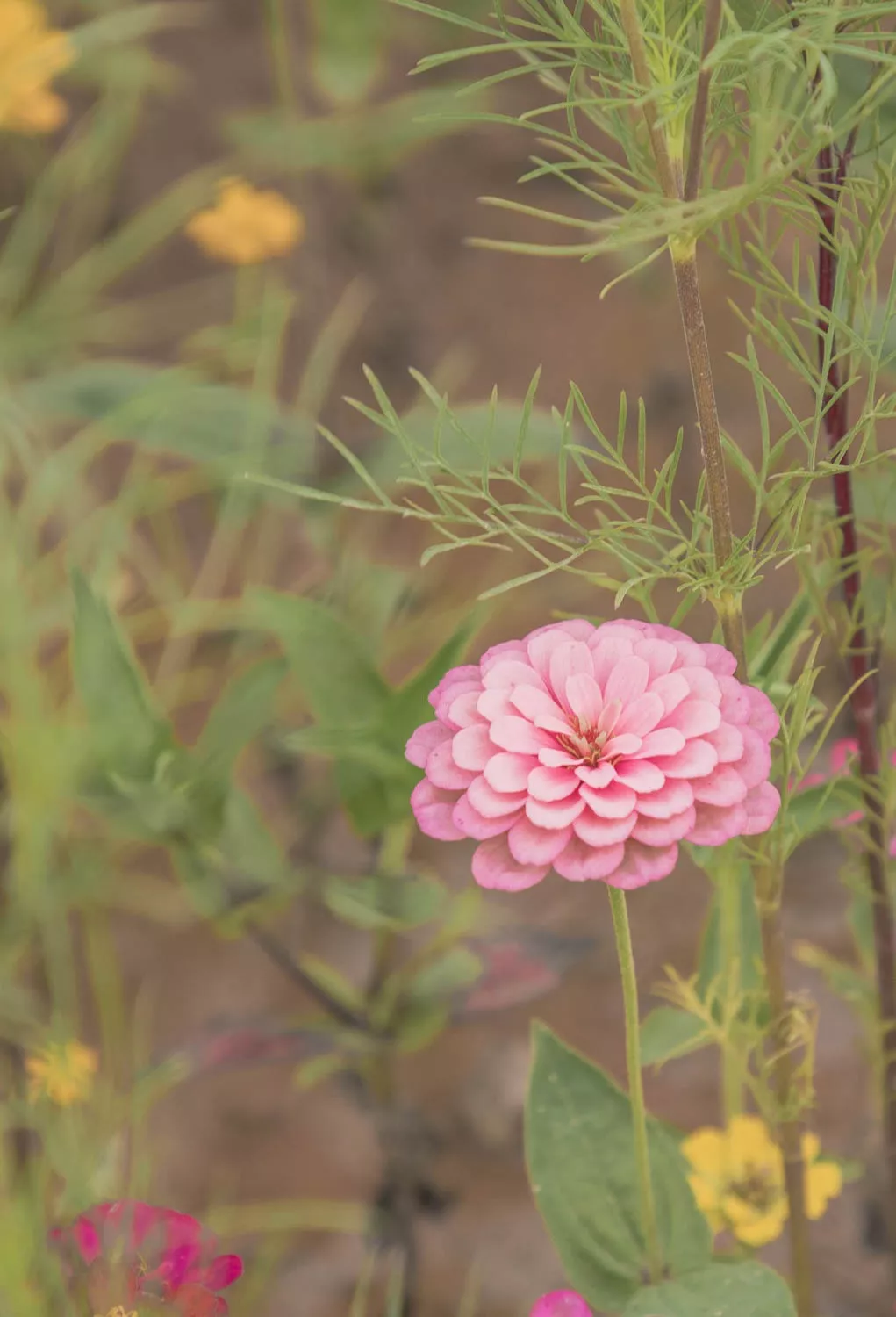 菊類花多種多樣,難以辨認(rèn),但百日菊卻很特別,它的花瓣從花心向外一輪一輪延展,既像水面漣漪,又似樹木年輪。
