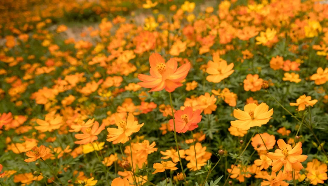 翠綠的葉與莖襯托著色彩明亮的花朵,陽光照耀下,仿佛一只只憨態(tài)可掬的小金魚在綠色的海洋里游動(dòng)。