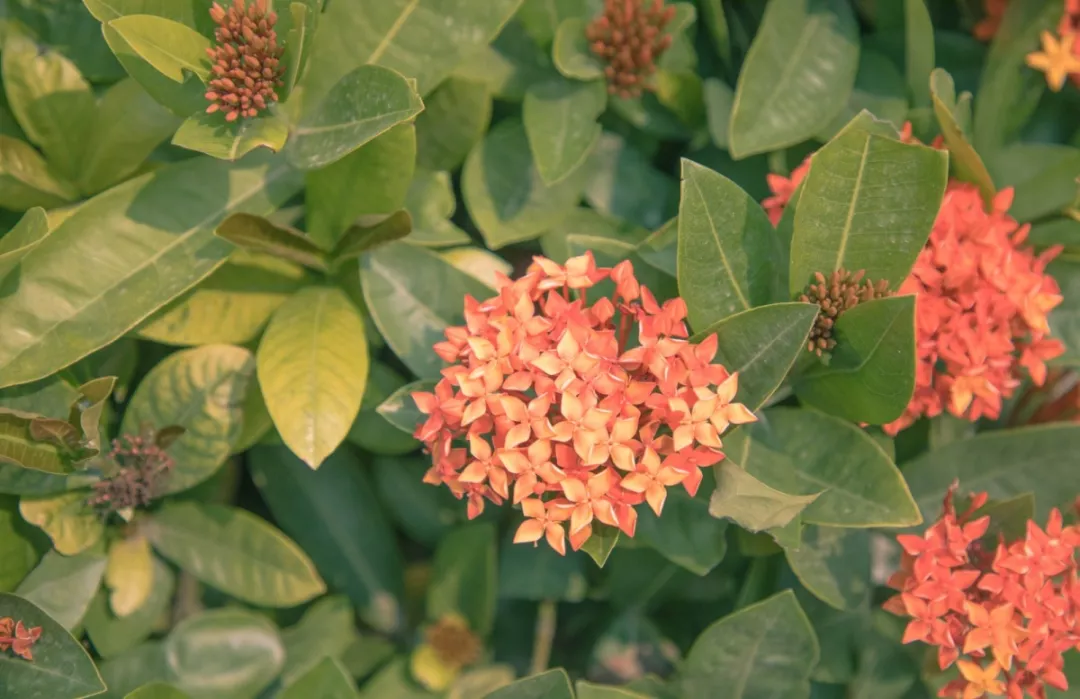 為什么要叫龍船花呢?據(jù)說是古時(shí)候端午,人們將花朵與菖蒲、艾草同插在龍船上以求吉祥,久而久之就被稱為龍船花了。