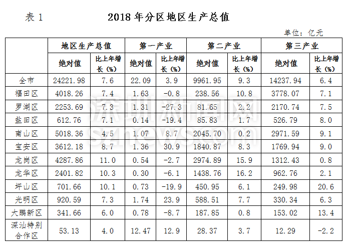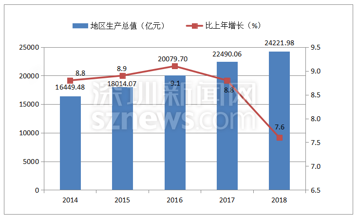 深圳新聞網(wǎng)2019年4月19日訊(記者 劉夢婷 通訊員 胡雪濤)4月19日,記者從深圳市統(tǒng)計(jì)局獲悉,深圳市2018國民經(jīng)濟(jì)與社會(huì)發(fā)展統(tǒng)計(jì)公報(bào)出爐:全市實(shí)現(xiàn)地區(qū)生產(chǎn)總值24221.98億元,比上年增長7.6%,常住人口達(dá)1302.66萬人。人均可支配收入57543.60元,居民人均消費(fèi)支出40535.02元。總體來看,2018年深圳經(jīng)濟(jì)運(yùn)行穩(wěn)健,主要經(jīng)濟(jì)指標(biāo)表現(xiàn)良好,高質(zhì)量發(fā)展扎實(shí)推進(jìn)。