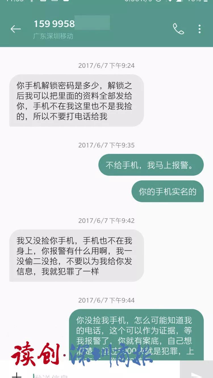 “你手機(jī)密碼多少,我把里面的資料全部發(fā)給你,但手機(jī)不是我撿的,不要打電話給我。”