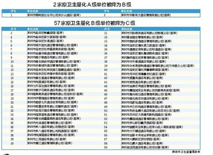 5、深圳市衛(wèi)生監(jiān)督部門自2018年12月開始集中開展專項(xiàng)整治行動。截至目前,行動中共檢查1660家酒店業(yè)單位,責(zé)令限期整改224家,立案95宗,共有59家單位在衛(wèi)生信譽(yù)等級評定復(fù)審工作中被予以“降級”,其中不乏部分知名連鎖酒店業(yè)單位。