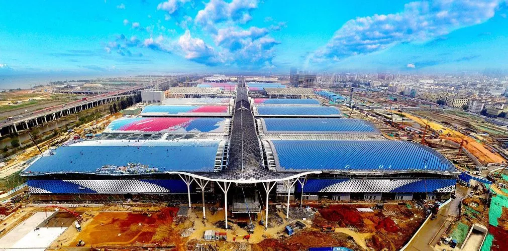 據(jù)了解,深圳國際會展中心整個登錄大廳區(qū)域網(wǎng)殼連同屋面龍骨由12155根構(gòu)件組成,下部由96根巨型分叉柱支撐,網(wǎng)殼的焊接作業(yè)所用的焊絲長度達(dá)到2400公里,相當(dāng)于北京到深圳的距離。
