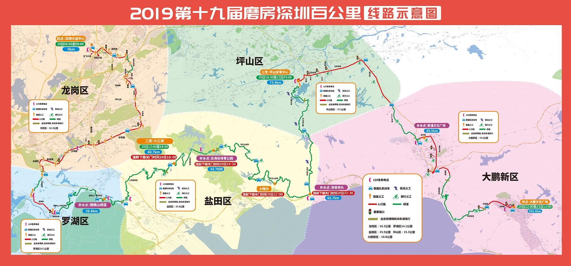 本屆百公里活動路線和補(bǔ)給點(diǎn)分布圖