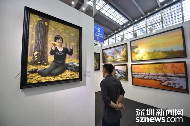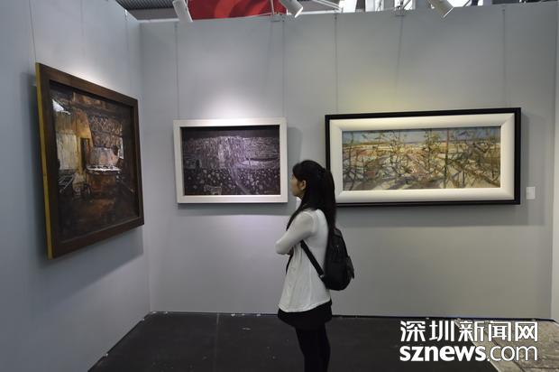國內(nèi)外知名藝術(shù)家展區(qū),市民在觀賞作品