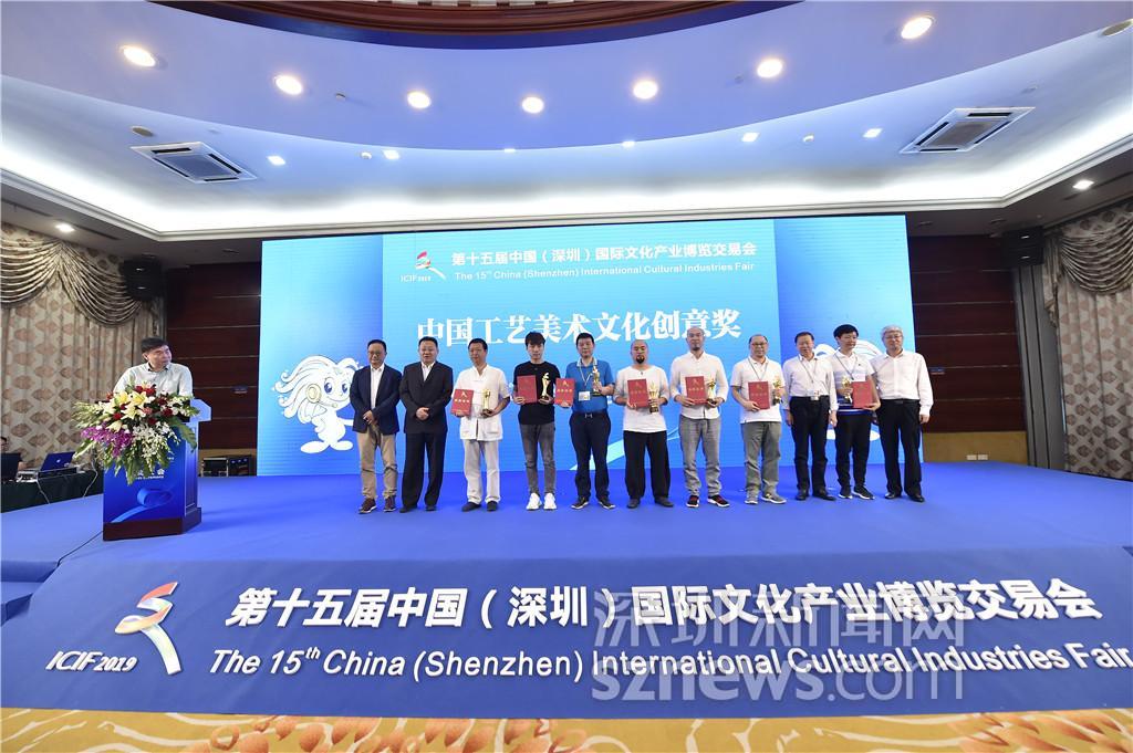 5月20日上午,第十五屆文博會(huì)頒獎(jiǎng)儀式在會(huì)展中心舉行,主辦方頒出了“優(yōu)秀組織獎(jiǎng)”、“優(yōu)秀展示獎(jiǎng)”、“貿(mào)易貢獻(xiàn)獎(jiǎng)”、“優(yōu)秀展品獎(jiǎng)”以及“中國工藝美術(shù)文化創(chuàng)意獎(jiǎng)”。