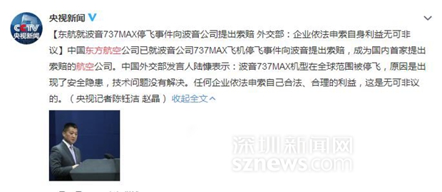 東方航空公司向波音公司提起索賠相關(guān)報(bào)道頁(yè)面截圖