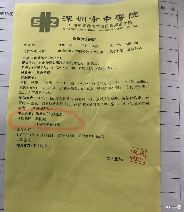 深圳女子到養(yǎng)生館做按摩后腦梗死 店家稱需司法鑒定