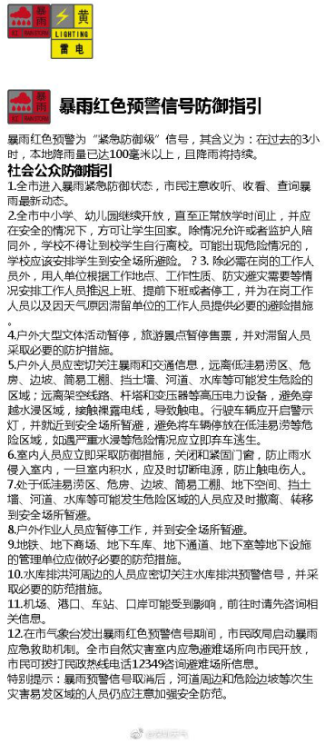 暴雨紅色預警信號防御指引