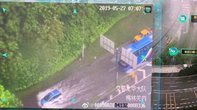 7時25分,受暴雨天氣影響,梅觀路北行轉(zhuǎn)梅坂大道匝道處,梅觀路南行南坪立交橋下,福強路雙方向金田路口,泥崗路上步立交橋下往市二醫(yī)院方向,道路積水嚴重,請車輛注意安全,遇積水路段慎行。