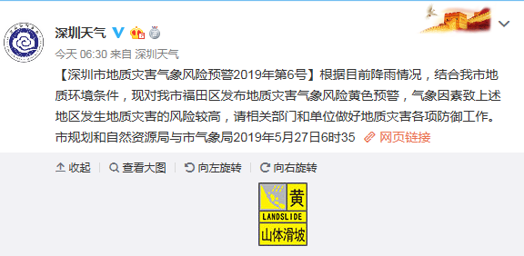 深圳市地質(zhì)災害氣象風險預警2019年第6號