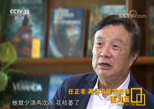 任正非:一樣,我們可以講,在日本一個(gè)小學(xué)教師,娶一個(gè)電影明星做太太,但以前是有名字的,現(xiàn)在我不講這個(gè)名字了,很正常,覺(jué)得很榮耀,不覺(jué)得不榮耀。當(dāng)然我們國(guó)家七十年來(lái)有巨大進(jìn)步,這三十年也有巨大改善,對(duì)吧,教師的生活也有大的進(jìn)步,但是我們要看到他們是我們祖國(guó)的未來(lái),他們是國(guó)家未來(lái)。他們擔(dān)負(fù)著花朵,給花朵澆水的人。我們都不給花朵澆水的人一種事業(yè)心一種使命感的話,他就少澆兩次水,花枯萎了,我們不就是一個(gè)喬布斯少掉了嗎?