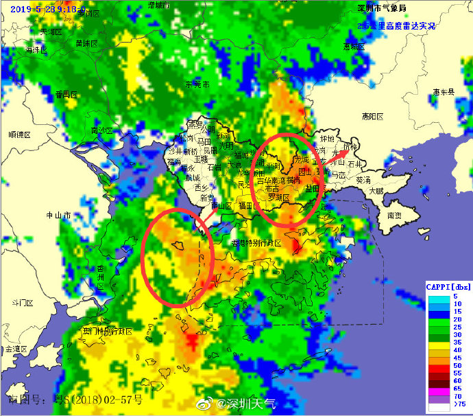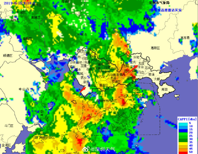 目前強降水中心已移至我市中部地區(qū),未來1-2小時內(nèi)東部地區(qū)將出現(xiàn)20-40毫米降水,深圳市氣象臺于2019年05月28日09時15分將暴雨黃色預(yù)警擴展至全市,全市進入暴雨戒備狀態(tài),請注意防范。