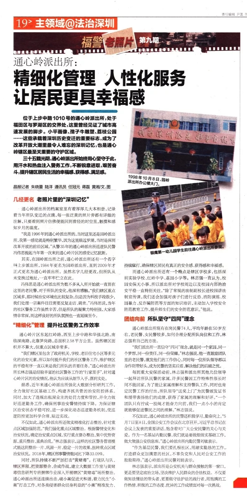 而通心嶺派出所還有一個(gè)特點(diǎn)是轄區(qū)學(xué)校多,包括深圳實(shí)驗(yàn)學(xué)校、紅嶺中學(xué)、荔園小學(xué)等。林志強(qiáng)一直認(rèn)為,校園安保無小事,所以派出所對(duì)學(xué)校周邊以及校園內(nèi)部的治安平穩(wěn)一直特別關(guān)注。