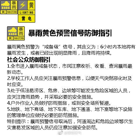 深圳市氣象臺(tái)于2019年06月03日05時(shí)10分在全市發(fā)布暴雨黃色預(yù)警,全市進(jìn)入暴雨戒備狀態(tài),請(qǐng)學(xué)生和家長(zhǎng)做好防雨防雷措施,雨急時(shí)就近避雨,上學(xué)途中注意交通安全。
