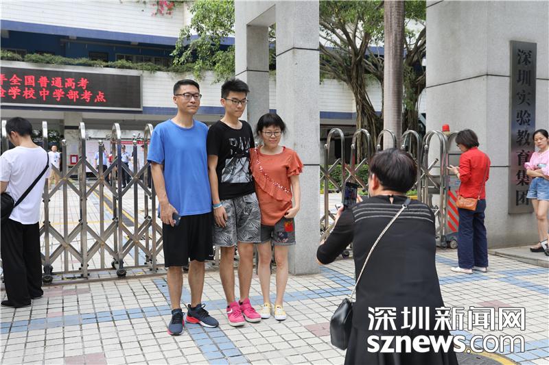 高考考場(chǎng)踩點(diǎn)前,考生與父母合影
