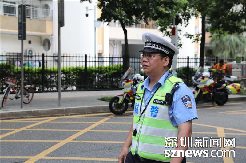 考點(diǎn)外,已有交通輔警幫忙指揮交通,方便考點(diǎn)周邊車輛通行