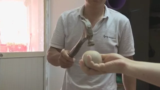 ▲單先生當(dāng)場(chǎng)用錘子實(shí)驗(yàn),石頭異常堅(jiān)硬
