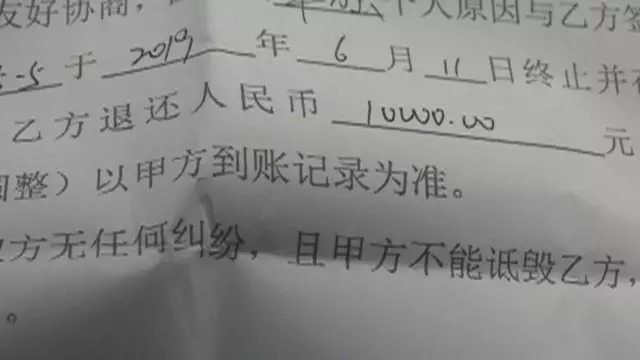 單先生出示了雙方簽的協(xié)議,雙方于6月11日解約,乙方拍賣公司退還甲方單先生1萬(wàn)元,“雙方無(wú)任何糾紛,甲方不得詆毀乙方”。公司另外補(bǔ)償?shù)?000元沒(méi)寫在協(xié)議上,但已經(jīng)打到單先生妻子賬戶上。