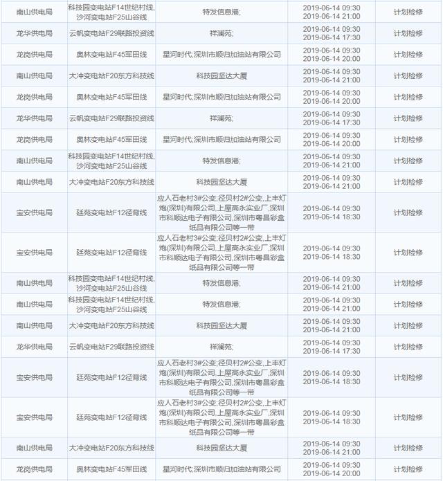 南方電網(wǎng)發(fā)布6月13日至6月16日深圳停電計(jì)劃 涉及多個(gè)區(qū)