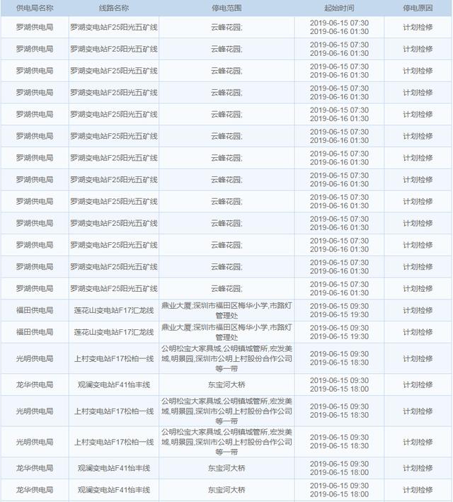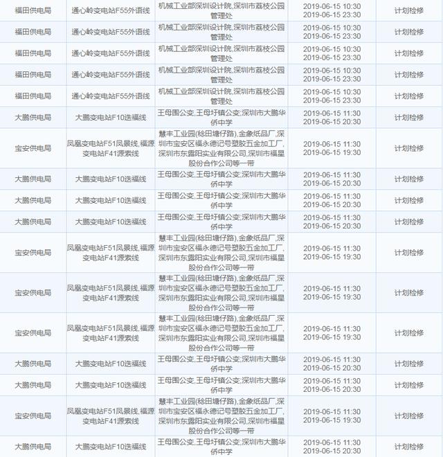 南方電網(wǎng)發(fā)布6月13日至6月16日深圳停電計劃 涉及多個區(qū)