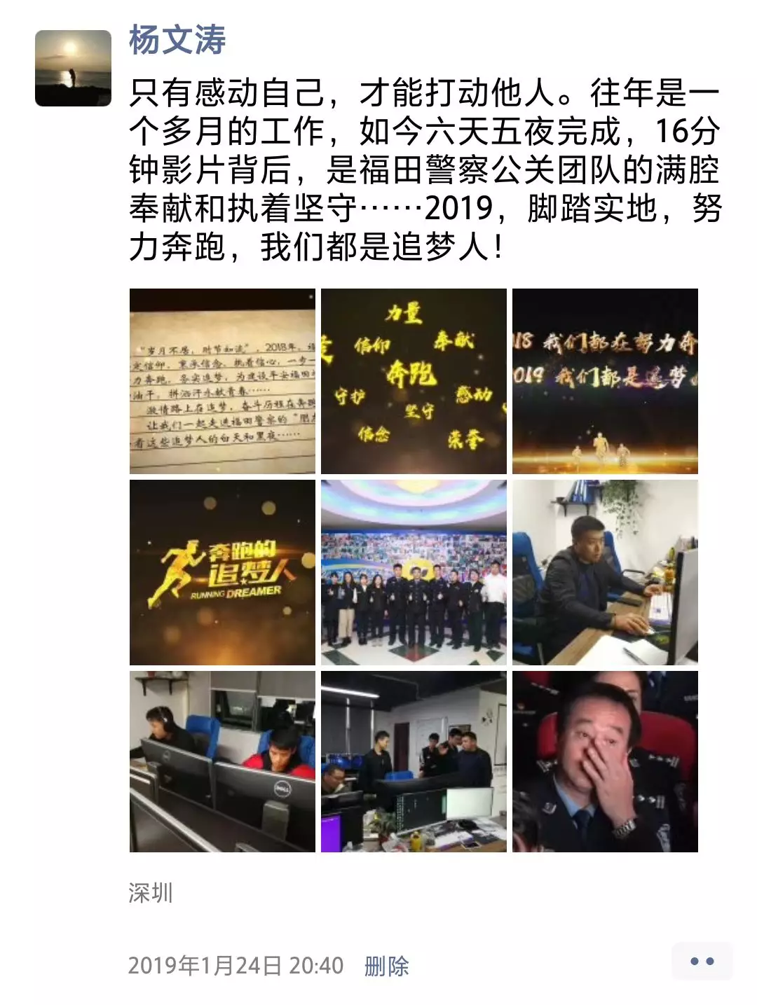 ▲香蜜湖派出所民警吳權(quán)朋友圈