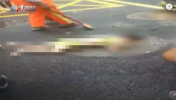 從現(xiàn)場目擊者拍攝的視頻可以看到,一個身穿黃色衣服的小女孩,臉部朝下躺在地面的一個井蓋上,女孩表情痛苦,兩只手不時在晃動,同時不停在哭喊著,身邊也圍著不少附近居民。