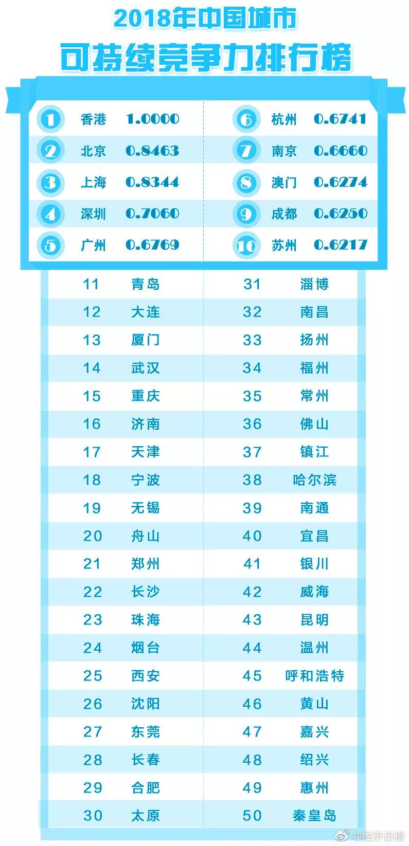 2018年中國(guó)城市綜合經(jīng)濟(jì)競(jìng)爭(zhēng)力排行榜出爐,深圳排第一